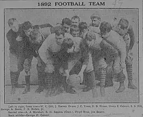 The Western University of Pennsylvania Athletic Association, with halfback William Gill as president, set up a seven-game schedule for the 1892 football season.[9] The team, led by captain Bert Smyers, compiled a 4–2 record and was outscored by a total of 46 to 38.[10]