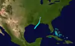 Ships detected a tropical storm over the north-central Gulf of Mexico on August 14.[1] Peaking with sustained winds of 60 mph (95 km/h), the cyclone struck Buras, Louisiana, at 19:00 UTC the following day. The storm then re-emerged into the Gulf of Mexico and made landfall in Mississippi on Horn Island around 13:00 UTC on August 16 and then the mainland between Ocean Springs and Pascagoula. After moving inland, the system weakened to a tropical depression and dissipated over Alabama on August 17.[2]