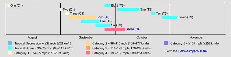 The eighth storm formed in the Western Caribbean, crossing to the northeast across Cuba, and dissipated over the Bahamas. It formed on September 25 and dissipated on September 28.