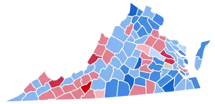 Rockbridge County | 1,658 | 42.46% | 2,223 | 56.93% | 22 | 0.56% | 2 | 0.05% | -565 | -14.47% | 3,905 |