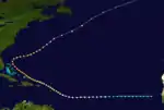 The fourth storm of the season was believed to have originated as a tropical storm off the coast of Africa on August 25. The storm slowly intensified, eventually reaching hurricane status on August 28. As the storm headed west-northwestward on August 31, it passed by the Lesser Antilles as a Category 2 hurricane. The storm became a Category 3 hurricane on September 2 as it passed north of the Dominican Republic. The storm further intensified into a Category 4 hurricane on September 5, located east of the Bahamas. Throughout the day on September 6, the hurricane began to curve northward. During the evening, it weakened to Category 3 status and began to travel northeastward on September 7.[2]
