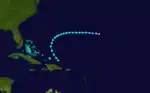 The final storm of the season started as a tropical depression on November 5, located in the Caribbean, south of Cuba. It strengthened into a tropical storm later during the day as it curved northward, and the storm turned towards the northeast on November 6. As it approached Cuba, the storm briefly attained hurricane status; however, as the hurricane made landfall over Cuba, it weakened to a tropical storm. The storm drifted over the Bahamas as a minimal tropical storm on November 8 while it traced east-northeast. It continued to weaken, and transitioned into an extratropical storm on November 10.[2] No damage is known to have been caused by the hurricane. Its path, its intensity, and the time of the year in which it formed are very similar to those of Hurricane Katrina of 1981.