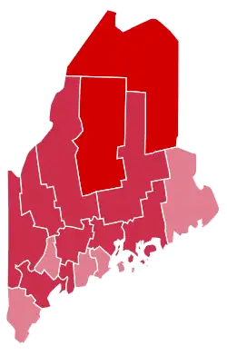 Aroostook | 4,783 | 77.56% | 1,157 | 18.76% | 53 | 0.86% | 145 | 2.35% | 29 | 0.47% | 3,626 | 58.80% | 6,167 |