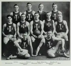 For the first time since organized basketball became a sanctioned sport within the university, the Fighting Illini basketball team was led by a returning head coach.[1] Herb V. Juul remained as the head coach of a team that played only nine games, each being a conference game. The Illini finished their season with a record of five wins, four losses and a fourth-place finish in the Western Conference. The starting lineup for the team included Albert L. Hall and Henry J. Popperfuss as forwards, captain Carl P. Watson at center, and Louis S. Bernstein and Thomas Thompson as guards.[2]