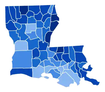 Plaquemines | 361 | 82.80% | 41 | 9.40% | 29 | 6.65% | 5 | 1.15% | 320[lower-alpha 3] | 73.39% | 436 |