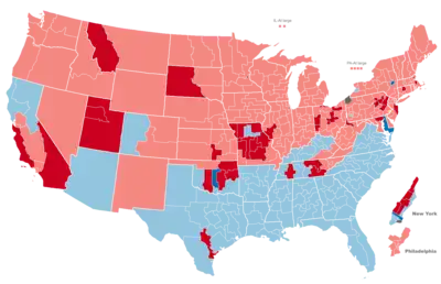 1920 presidential election results. Red denotes states won by Harding, blue denotes states won by Cox. Numbers indicate the electoral votes won by each candidate. | |