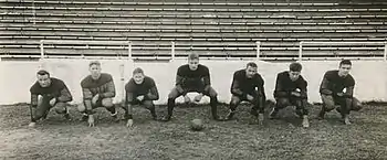 The starting lineup was: Green (left end), Norfleet (left tackle), Grandoff (left guard), Bono (center), Houser (right guard), Hicks (right tackle), Nolan (right end), Bowyer (quarterback), McEwen (left halfback), Owens (right halfback), and Sauls (fullback).[32]