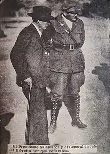 It is notable that the conspiracy to overthrow Salamanca was "not partisan and, secondly, there was no leader guiding the conspiracy. The transitory result was not the seizure of power, but the recognition of a constitutional succession".[25] Nevertheless, the coup was a mortal wound to the traditional political system which had governed for decades and set the stage for its eventual downfall in 1936 and its permanent dissolution following the 1952 National Revolution.[26]
