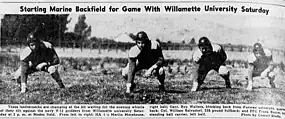 - ↑ Paul Haines (October 2, 1944). "Willamette Navycats Romp Over Marine Eleven 33-14 In High Scoring Contest". Herald and News. p. 2 – via Newspapers.com.