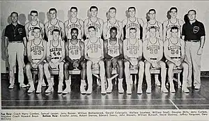 The 1960-61 team utilized several returning lettermen including the leading scorer and team "MVP" Dave Downey. It also saw the return of Jerry Colangelo, John Wessels, Bill Burwell, Bill Small, as well as Doug Mills. The Illini also added sophomore Bob Starnes to their lineup. The Illini finished the season with a conference record of 5 wins and 9 losses, finishing 7th in the Big Ten. They would finish with an overall record of 9 wins and 15 losses. The starting lineup included Bill Burwell at the center position, Bill Small and Jerry Colangelo at guard and Dave Downey and John Wessels at the forward slots.[1]