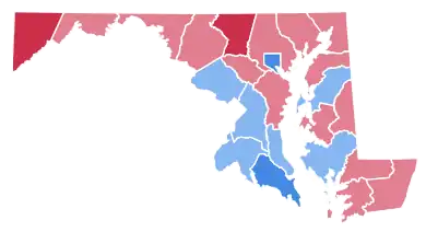 In this election, Maryland was 7.07% more Democratic than the nation at-large.[6]