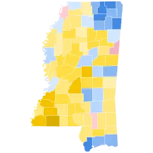 - ↑ Because the unpledged slate won Mississippi and Kennedy finished second behind the unpledged slate in Mississippi as a whole, all margins given are Kennedy vote minus unpledged vote and percentage margins Kennedy percentage minus unpledged percentage unless otherwise noted for the county in question