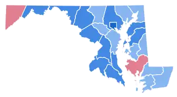 As of the 2020 presidential election, this is the last election in which Harford County, Carroll County, Washington County, Wicomico County, Worcester County, Queen Anne's County and Caroline County voted for a Democratic Presidential candidate.[3]