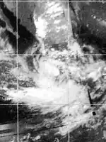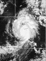 The first storm to make landfall, Katrina formed on August 30.[14] It became the third hurricane of the season 30 hours after it was named. The night that Katrina became a hurricane, it made landfall on the Baja Peninsula with winds of 85 miles (137 km) per hour. It emerged soon after and paralleled the peninsula until making landfall at the head of the Bay of California. It rapidly weakened to a tropical depression and dissipated over Arizona.[15][16] In Mexico, Katrina caused significant damage to parts of San Felipe. A total of 2500 people were left homeless and 60 ships were sunk. At least one person was killed.[17][18]