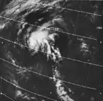 Typhoons Sarah and Wanda interacting in the Northwest Pacific Ocean on September 20th, 1967.