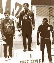 Medal winners of freestyle 68 kg. From left to right, Ismail Yuseinov, Abdollah Movahed and Bobby Douglas