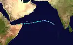 A tropical cyclone moved through the Arabian Sea near the end of October.