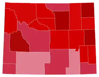 Nixon carried Wyoming with 69.01 percent of the vote to McGovern's 30.47 percent, a victory margin of 38.54 points.[1] In a state that would reflect McGovern's national results, the Democratic nominee did not win a single county in Wyoming, making Nixon the first Republican to carry Sweetwater County and thus to sweep all of Wyoming’s counties since Warren G. Harding in 1920.[2]