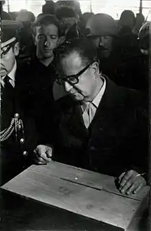 President Salvador Allende voting in the parliamentary elections of 1973.