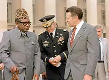 - As an alternative to the power suit, the safari jacket, Nehru suit and Mao suit remained popular in Australia, South Africa, India, China, and Zaire, where it was known as an Abacost[88] and worn with a leopard print hat resembling the Astrakhan cap. At the same time, young African dandies known as sapeurs rebelled against the post-decolonisation government's suppression of Western fashions[89] by investing in expensive designer suits from Italy and France and listening to the soukous music of Papa Wemba.[90] This continued until the kleptocratic dictator Mobutu's deposition and death in the late 1990s, when the outbreak of a civil war in Zaire resulted in the sapeurs' disappearance until the 2010s.[91]