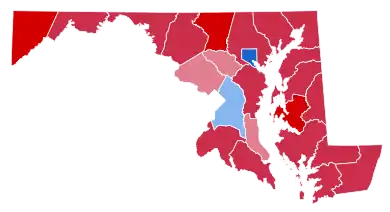 Reagan won all but one of the state's 23 counties. The race was close, however, due to Mondale's strong performances in largely African-American Baltimore City and Prince George's County. Reagan also won Montgomery County in the Washington suburbs by only 888 votes out of almost 300,000 cast; this the last time to date that a Republican has won this county.[4] This also marks the last time the Democratic candidate was held below 60% of the vote in neighboring Prince George's County.[5]