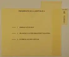 General elections were held in Chile on 14 December 1989,[1] bringing an end to the military regime that had been in place since 1973. Patricio Aylwin of Concertación alliance was elected President, whilst the alliance also won a majority of seats in the Chamber of Deputies and in the elected Senate seats.