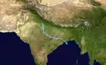 During July 27, a depression developed over the northern Bay of Bengal to the east of the Indian state of Odisha.[2][4] Over the next day the system moved westwards and developed into a Deep Depression, as it made landfall near Badudebpur in Odisha with estimated winds of 55 km/h (35 mph).[4] The system dissipated over East Rajasthan during July 31, as it enhanced monsoon activities over northern and eastern India.[4]