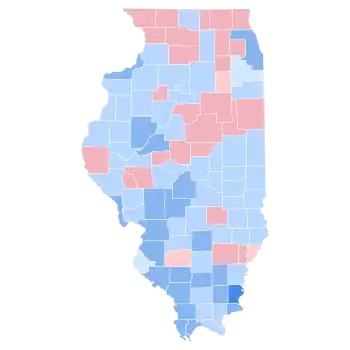 Clinton ultimately won the national vote, defeating incumbent President Bush.[2] Clinton became the first Democrat to win Illinois on a presidential level since 1964 and notably won seven of 21 Illinois counties that had backed Barry Goldwater in that election.[3] He remains the only Democrat to win Johnson County and Pope County[note 1] — Southern and anti-Yankee in culture but converted to Unionism by war[4] — since Stephen A. Douglas in 1860.[5] In Northern Illinois Clinton became the first Democrat to ever win Whiteside County which had voted in Presidential elections since 1840,[5] the first to win DeKalb County since Franklin Pierce in 1852, and the first to win Bureau, McDonough and Warren Counties since Franklin D. Roosevelt in 1932.[3]