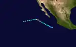 The seasonal activity during 1995 was below normal, and marked the first of several seasons with lower than normal activity.[1] Four tropical cyclones affected Mexico: first, Hurricane Flossie passed within 75 miles (121 km) of Baja California Peninsula, producing moderate winds and killing seven people. Afterwards, Tropical Storm Gil dropped heavy rainfall in Southern Mexico early in its life, though caused no damage. Hurricane Henriette later made landfall near Cabo San Lucas with winds of 100 mph (160 km/h), resulting in moderate damage but no deaths. Finally, Ismael struck the state of Sinaloa as a minimal hurricane. Offshore, fishermen were caught off guard by the hurricane, causing 57 of them to drown. On land, Ismael destroyed thousands of houses, leaving 30,000 homeless and killing another 59. Both Hurricanes Flossie and Ismael also produced moisture and localized damage in the Southwestern United States.[4][5]