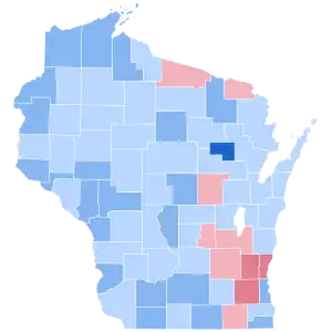 As of the 2020 presidential election, this is the last election in which the following counties have voted for a Democratic presidential candidate: Polk, St. Croix, Sheboygan, and Taylor.[2] Waushara County voted Democratic for the first time since 1932.