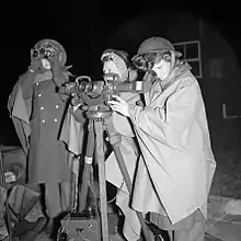 The Luftwaffe carried out few bombing raids on London during 1943, preferring to concentrate on 'hit and run' attacks by Fighter-bombers against coastal targets.[18][19] However, in January 1944 it resumed night raids on London, which became known as the 'Baby Blitz'. These raids employed new faster bombers with sophisticated 'pathfinder' techniques and radar jamming. For example, on the night of 21 January 200 hostile aircraft were plotted approaching the South Coast in two waves, which intermingled with returning aircraft of RAF Bomber Command. This caused problems of identification and restrictions on fire, but the guns of 2 AA Group and then 1 AA Group engaged as the raiders approached London. Only one-fifth of the raiders reached the city, the remainder turning away to bomb open country. AA guns brought down eight aircraft and RAF Night fighters with S/L assistance also had successes. At the end of January London Docks received a 130-strong raid dropping flares and incendiaries as they had in the London Blitz of 1940–41: about one-third reached their target and five were shot down. February began with a 75-strong raid, of which only 12 reached the IAZ and four were shot down. On 13 February only six out of 115 bombers reached London. The climax came with five raids in the week 18–25 February varying from 100 to 140 in strength. These met intense AA fire from the Thames Estuary onwards and fewer than half made it to central London: the AA score was 13 shot down while the night fighters and S/Ls added 15, with another shared. Facing these casualty rates, the Luftwaffe switched to targets away from London until 24 March, when a 100-strong raid on London lost four aircraft, and finally on 18 April a raid of 125 aircraft lost 14 shot down and only 30 reached the IAZ. Although much damage was caused in London, the rising efficiency of the HAA guns and radar made the enemy's losses unsustainable.[20][21][22]