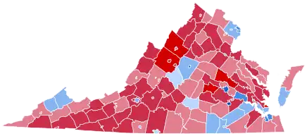Though the state was uncontested by both campaigns,[8] John Kerry became the first Democrat since Lyndon B. Johnson in 1964 to carry Fairfax County, long a key Republican stronghold and the most populous county in the state. He was also the first Democrat since Harry S. Truman in 1948 to carry the independent city of Danville and Albermarle County.[9] However, Bush managed to keep the margin in Virginia roughly unchanged with respect to 2000 by making further inroads in rural Virginia, particularly in Southwest Virginia, a heavily unionized region that had traditionally been one of the Democratic strongholds in the state. Bush became the first Republican to carry Russell County since 1972 and expanded his margin by over 10 points in Washington, Scott, Wise, Lee, and Smyth Counties. These countervailing trends would continue in subsequent elections, with Democrats expanding their support in Fairfax County while Republicans showed increasing support in Appalachian Virginia.