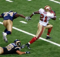 The 49ers addressed their problems in the secondary with the signing of veteran cornerback Nate Clements from the Buffalo Bills. The contract was worth $80 million for 8 years, the largest contract given to a defensive player in NFL history. They also signed strong safety Michael Lewis from Philadelphia on the same day. Other key defensive pickups included linebackers Colby Bockwoldt and Tully Banta-Cain and nosetackle Aubrayo Franklin. The team also addressed its wide-receiver needs by signing former Denver Bronco and Atlanta Falcon, Ashley Lelie and Seattle Seahawk, Darrell Jackson. San Francisco also used the free agency period to extend Gore's contract to 4 years worth $28 million, $14 million of which is guaranteed.