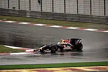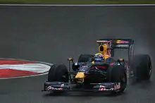 The qualifying session on Saturday afternoon was split into three parts. Sebastian Vettel achieved his second career pole position – and the first for his Red Bull Racing team – at the end of the session.[26] Vettel, who ran only one flying lap each in the final two parts of qualifying, due to problems with the driveshafts of his car, edged out Fernando Alonso by two-tenths of a second in the final part of qualifying.[27] Red Bull's other driver Mark Webber finished third, immediately ahead of Brawn GP cars of Barrichello and Button. Kimi Räikkönen, after a disappointing performance during practice, secured eighth position behind Trulli in sixth and Rosberg in seventh place. Hamilton and Toro Rosso's Sébastien Buemi completed the top ten on the grid.[28] Nick Heidfeld, Heikki Kovalainen, Felipe Massa, Timo Glock and Kazuki Nakajima made up 11th to 15th on the grid. Drivers eliminated in the first qualifying session and classified 16th to 20th were Sébastien Bourdais, Nelson Piquet Jr., Robert Kubica, Adrian Sutil and Giancarlo Fisichella.[28] Due to his five-place penalty, Glock was placed 19th and Nakajima, Bourdais, Piquet, Kubica and Sutil were each promoted by one position in the revised starting grid.[29]