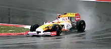 Williams' Rosberg was quickest in the practice session on Saturday morning. Rosberg, who slid off the track onto the gravel at the start of the session, timed 1:36.133 to top the timesheets, followed by Trulli and Hamilton.[22] Button finished fourth with Renault's Nelson Piquet Jr. clocking the fifth fastest lap time for the session. Piquet's team-mate Fernando Alonso on the other hand, whose Renault R29 car was fitted with new diffuser and without the KERS, could only manage a time good enough for 19th fastest.[23] BMW Sauber's Robert Kubica who also removed his KERS for this session, improved significantly from his results in the earlier two sessions.[20] Timo Glock's Toyota TF109 car faced gearbox problems early in the session and had to change the gearbox for the upcoming qualifying session. Glock received a five-place grid penalty for this gearbox change.[24]