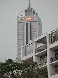 Damage to a sign on a skyscraper in Perth city caused by hail