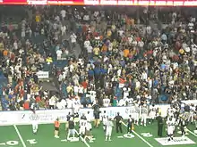 The game itself took an ugly turn shortly before halftime because of an altercation between fans and two Orlando players. Center Julius Wilson reportedly attempted to toss a football to his father in the stands behind the Predator bench, however a fan knocked the ball away from the hands of Wilson's father, and as other fans scrambled to get the ball, Wilson's father was knocked down. Receiver Bobby Sippio went into the seats as his own father was near the area of the incident. Wilson eventually went into the stands as well, and threw a punch at a fan, which resulted in a fight breaking out. Both players were ejected from the game and were given suspensions.[3] Sippio, who was given a suspension of one game, appealed, allowing him to participate in the playoffs. Wilson was given a six game suspension that he was not allowed to appeal because it was not his first ejection that season.[4] Ten fans were also escorted away. No arrests were made.[5]