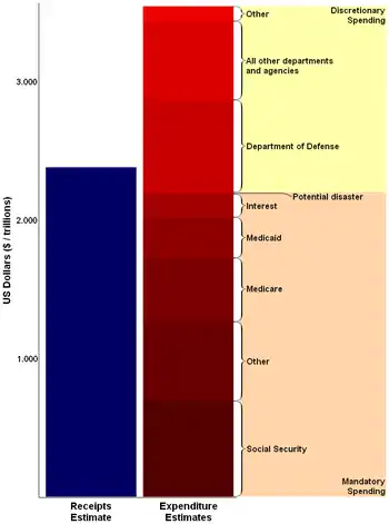 Total expenditures | $3.552 trillion (requested) $3.456 trillion (actual)[2] 23.4% of GDP (actual)[3] |