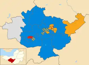The 2011 Taunton Deane Borough Council election took place on 5 May 2011 to elect members of Taunton Deane Borough Council in Somerset, England. The whole council was up for election and the council stayed under no overall control. The Conservatives won 28 seats, exactly half, while the Liberal Democrats took 23. Labour only won three seats, with the two remaining held by independent candidates.[1] Falling only one seat short of an overall majority, the Conservatives took on the leadership of the council as a minority administration, under Councillor John Williams.[2]