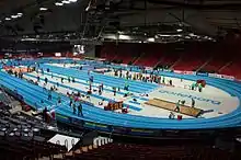 The main venue for the 2013 European Athletics Indoor Championships will be Scandinavium with a maximum capacity of 12,000 spectators, but at the event the arena will have about 6,500 spectators because of the reconstruction. Prior to the championships, the arena floor will be raised 3 metres and be equipped with running tracks. In Svenska Mässan, next to Scandinavium, there will be a Market Square, where various activities will be organized during the competitions. All the victory ceremonies will take place in the Market Square during the evenings. The shot put qualifications will also be held at a special shot put venue in Svenska Mässan.[3] The host city Gothenburg has organized several championships in athletics before. In 1974 and 1984, Scandinavium hosted the European Indoor Championships. Moreover, nearby Ullevi Stadium has staged the 1995 World Championships in Athletics and the 2006 European Athletics Championships. Last time Sweden hosted the European Indoor Championships was in 1996 when Ericsson Globe in Stockholm held the event.