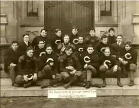 The Chicago Maroons football team represents the University of Chicago in college football. The Maroons, which play in NCAA Division III, have been a football-only member of the Midwest Conference since 2017.[4] The University of Chicago was a founding member of the Big Ten Conference and the Maroons were coached by Amos Alonzo Stagg for 41 seasons. In 1935, halfback Jay Berwanger became the first recipient of the Downtown Athletic Club Trophy, later known as the Heisman Trophy. In the late 1930s, university president Robert Maynard Hutchins decided that big-time college football and the university's commitment to academics were not compatible.[5] The university abolished its football program in 1939 and withdrew from the Big Ten in 1946. Football returned to the University of Chicago in 1963 in the form of a club team, which was upgraded to varsity status in 1969. The Maroons began competing in Division III in 1973.