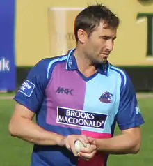 Late in the season, during September, Scotland travelled to Ireland to play three ODIs at the Malahide Cricket Club Ground in Dublin. The Irish squad was largely similar to that which faced Sri Lanka A, though John Mooney, Kevin O'Brien, George Dockrell and Max Sorensen returned to the squad.[8] Ireland won the toss and chose to bowl first, and regularly took wickets to restrict Scotland to a total of 172. Craig Young became the ninth player to take five wickets during their ODI debut, to help bowl Scotland out after 40 overs and three balls.[9] Ireland chased the target down easily, aided by a half-century from O'Brien, to win by seven wickets.[9] Scotland fared better in the second match after once again being invited to bat first; an unbeaten century from Richie Berrington helped his side reach 221. O'Brien was Ireland's leading run-scorer again, with 67 runs, and despite losing a few wickets once O'Brien was dismissed, Ireland reached the target with over five overs to spare.[10] Shortly before the third match of the series, an interview with Mooney was broadcast on RTÉ Sport, in which he spoke about his battle against depression which had forced him to take a break from international cricket.[11] During the match, he was received a standing ovation for his score of 96, which held the Irish innings together, though they finished on a below-par score of 241. Scotland's off-spiiner, Majid Haq, collected five wickets in the innings. In their reply, Scotland lost the wicket of Matthew Cross in the second over, but a partnership of 182 between Calum MacLeod and Hamish Gardiner helped to seal their only victory of the series, with the former reaching his second ODI century.[12]