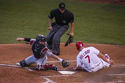 - ↑ Timmerman, Tom (September 1, 2015). "Cards win another stunner, beat Nationals 8–5". St. Louis Post-Dispatch. Retrieved September 4, 2015.