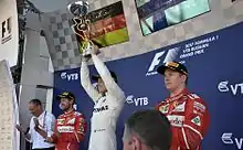 The 2017 Russian Grand Prix (Russian: Гран-при России 2017 года, romanized: Gran-pri Rossii 2017 goda), officially known as the 2017 Formula 1 VTB Russian Grand Prix,[1] was a Formula One motor race that took place on 30 April 2017 as the fourth round of the 2017 FIA Formula One World Championship.[5] The fifty-two lap race was held at the Sochi Autodrom, marking the fourth running of the Russian Grand Prix as a round of the Formula One World Championship. Sebastian Vettel started the race from pole, with his teammate Kimi Räikkönen in second in Ferrari's first front-row lockout since the 2008 French Grand Prix. Valtteri Bottas won the race, taking his first win in Formula 1 by 0.617 seconds over Vettel, the smallest winning margin since the 2016 Abu Dhabi Grand Prix.