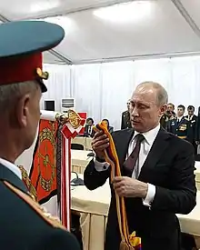 President of Russia Vladimir Putin presenting the base with the Order of Zhukov in the course of a visit on 5 October 2012