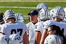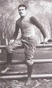The Bulldogs were the dominant team in the early days of intercollegiate football, winning 27 college football national championships, including 26 in 38 years between 1872 and 1909.[3] Walter Camp, known as the "Father of Football," graduated from Hopkins Grammar School in 1876, and played college football at Yale College from 1876 to 1882. He later served as the head football coach at Yale from 1888 to 1892.[4] It was Camp who pioneered the fundamental transition of American football from rugby when in 1880, he succeeded in convincing the Intercollegiate Football Association to discontinue the rugby "scrum," and instead have players line up along a "line of scrimmage" for individual plays, which begin with the snap of the ball and conclude with the tackling of the ballcarrier.[5] In 1916, against the advisement of coach Tad Jones, Yale quarterback Chester J. LaRoche (1918s) helped lead the Yale team in a win against Princeton by turning the momentum of the game with a fourth-down call in the huddle to go for first down rather than punt. The team made the down and went on to win the game in one of Yale's greatest victories in its history. LaRoche went on to spearhead the creation of the National Football Foundation and Hall of Fame.[6]