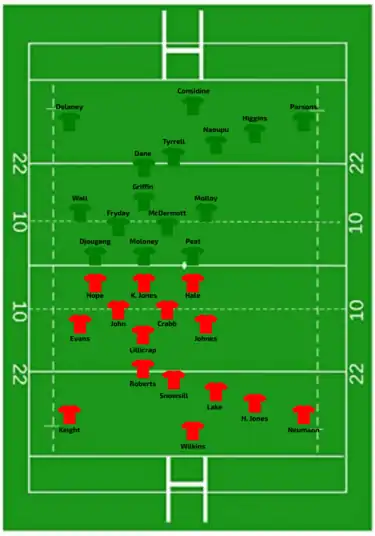 18:00 BST (UTC+01:00) | Report | Try: Considine (2) 3' m, 18' c Parsons (2) 10' c, 15' m Naoupu 28' c Wall 72' c Tyrrell 80' +1 c Con: Tyrrell (5/7) 12', 19', 28', 74', 80' +2 |