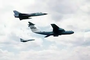 437th Military Airlift Wing C-141 escorted by F-106s in 1980