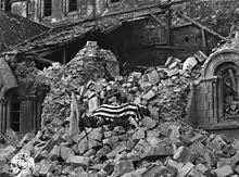 On 11 June the 116th was withdrawn to the reserve in order to reorganize due to the D-Day losses. After the 115th Infantry was repulsed while attacking across the Ellé towards the key road junction of Saint-Lô, the 116th was moved forward on the morning of 13 June. The regiment began crossing the river at 20:15, encountering heavy small arms which died down, allowing the 116th to reach the opposite bank by midnight. The 2nd Battalion captured Saint-Clair, and Couvains was captured at 10:45 on the morning of 14 June. By 17 June, most of the regiment had reached positions only 3 miles (4.8 km) short of Saint-Lô, but the fighting in the Battle of Saint-Lô bogged down in the difficult bocage terrain of Normandy. The 116th fought to overcome Martinville Ridge near the city from 12 July, then after street fighting the city was captured on 18 July. 3rd Battalion commander Major Thomas D. Howie was killed by a mortar shell on 17 July just before he was to lead his unit into the city and moments after telling division commander Major General Charles Gerhardt "See you in St. Lo!". His flag-draped body was brought into the city on the lead jeep during its liberation and laid in state in the city's square. Between 7 June and 19 July, 438 men of the regiment were killed, 2,040 wounded, and 38 missing, for a total of 2,516 casualties. On 20 July the 29th was relieved by the 35th Infantry Division and sent back into XIX Corps reserve near Saint-Clair.[61]