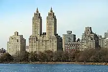 - ↑ The New York Times also characterizes the Beresford as having twin towers.[19] However, the structure actually has three relatively short, octagonal pinnacles.[29][30]